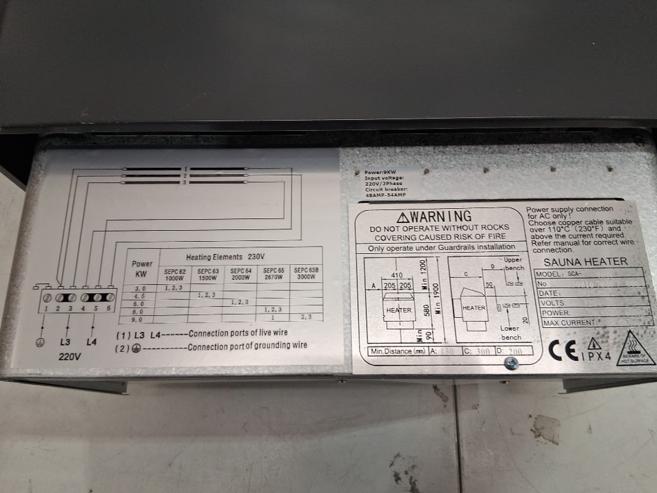 VEVOR DRY STEAM BATH STOVE SAUNA HEATER - 220V/9KW - 317-459 cu.ft - Black - (MODEL: SCA-90W)
