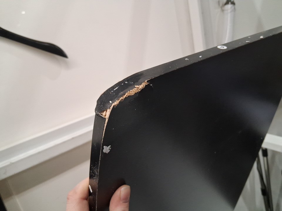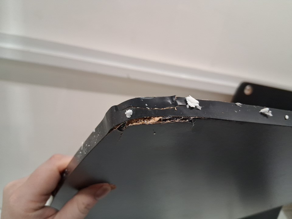 2 of the larger shelves have cosmetic damage to one of the corners on each shelf ( see photos)