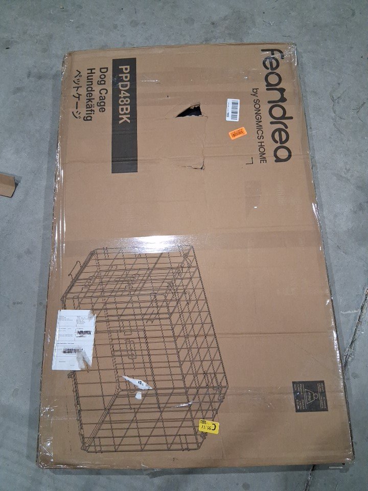 FEANDREA 2‑Door Folding Dog Cage with Powder‑Coated Metal with Removable Tray, Safe Floor Protectors, and Divider Panel - 48" x 29" x 31" - black (model:PPD48BK)