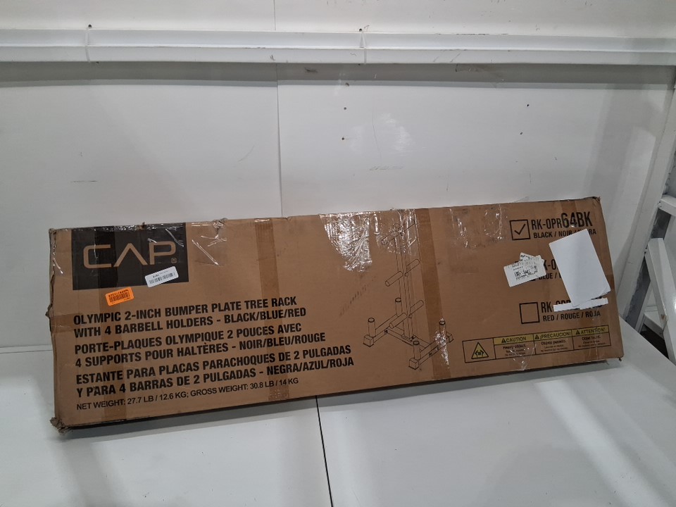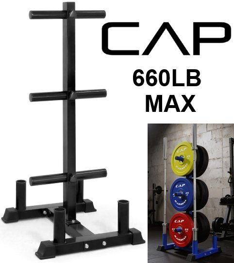 CAP Olympic bumper plate tree with vertical bar holders - 660lbs max - black - (model: RK-OPR64BK)