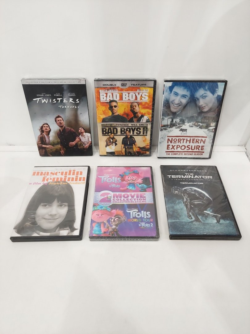 6 assorted genre dvd MOVIE BUNDLE INCLUDING TWISTERS, BAD BOYS 1 & 2, TROLLS 2-MOVIE COLLECTION, & MORE