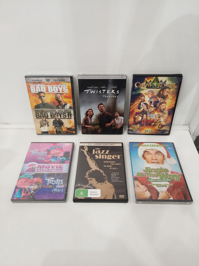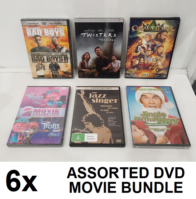 6 assorted genre dvd MOVIE BUNDLE INCLUDING TWISTERS, BAD BOYS 1 & 2, TROLLS 2-MOVIE COLLECTION, & MORE
