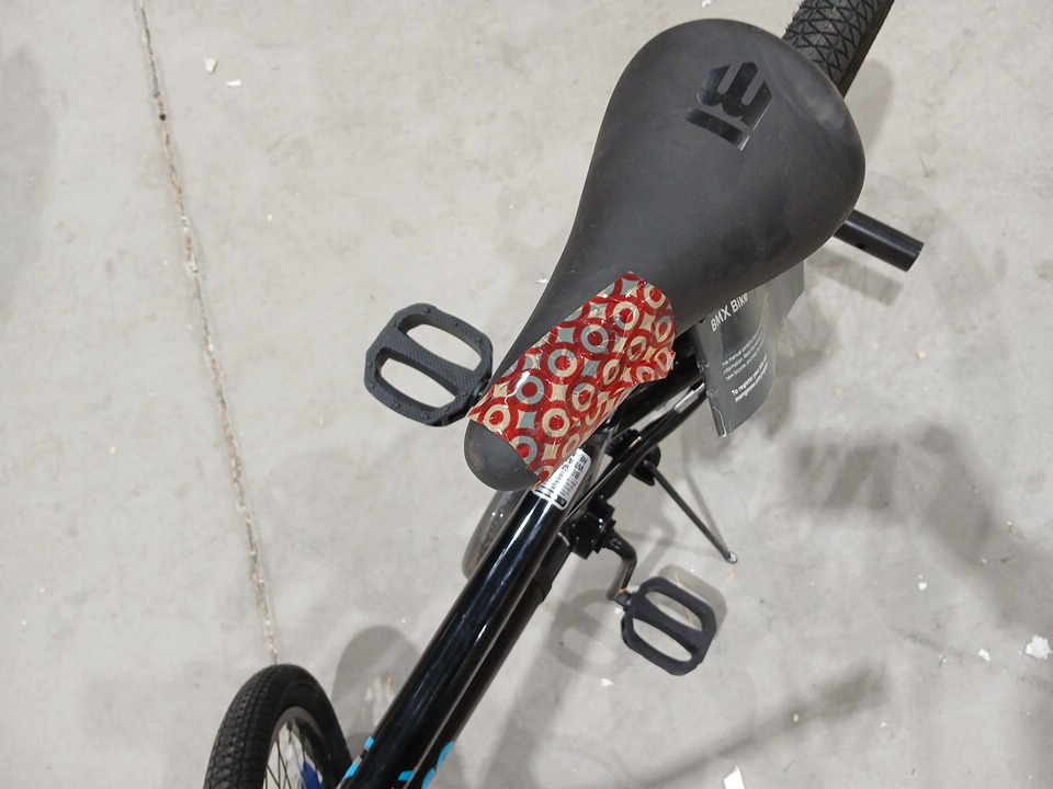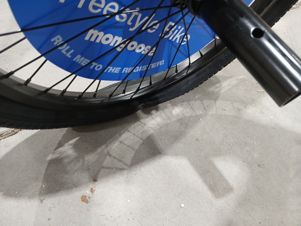 the bike has dirt smudges on the handles from shipping, there is also a rip in the seat and deflated tires.