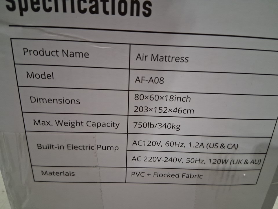airefina raised air mattress with built in pump - queen - 80" x 60" x 18" - black/grey (MODEL: AF-A08)