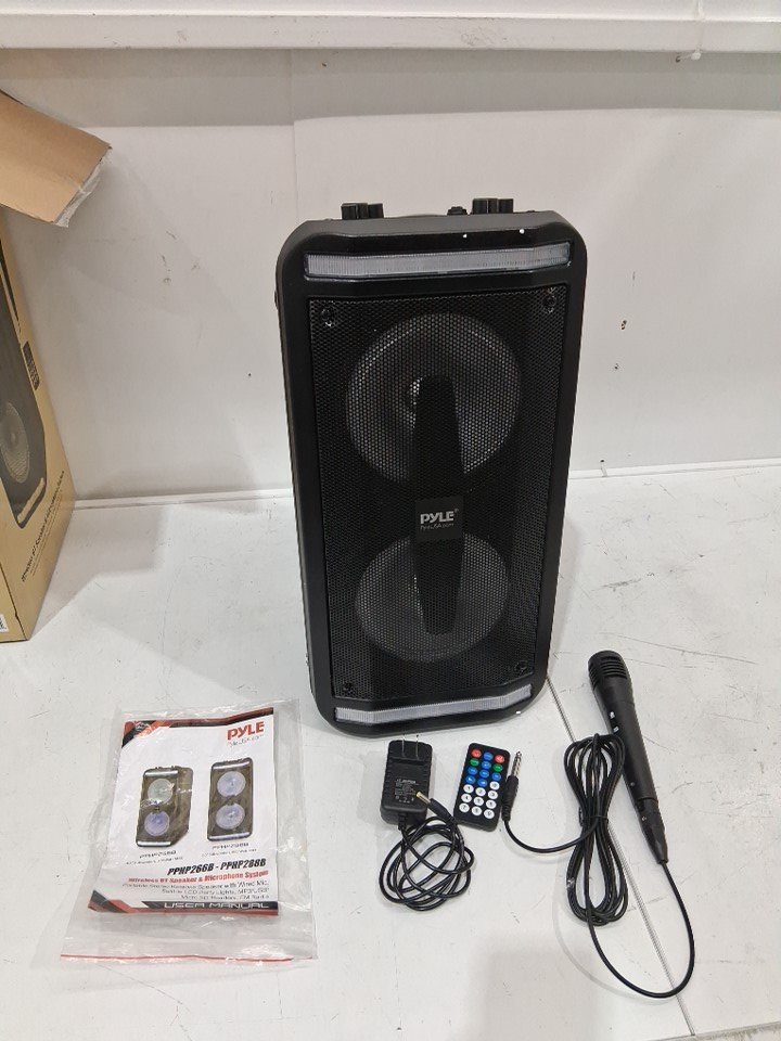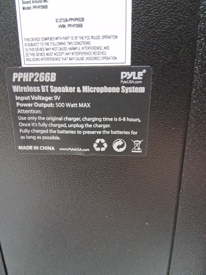 tested for power, played to full volume, mic tested for power PLEASE NOTE when turning up the volume the music cuts in and out a bit but when the volume is left the same at any level the sound stays good