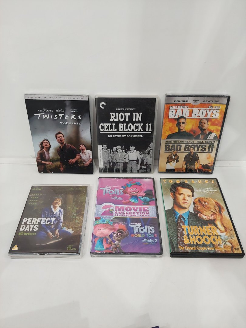 6 assorted genre dvd MOVIE BUNDLE INCLUDING TWISTERS, BAD BOYS 1 & 2, TROLLS 2-MOVIE COLLECTION, & MORE