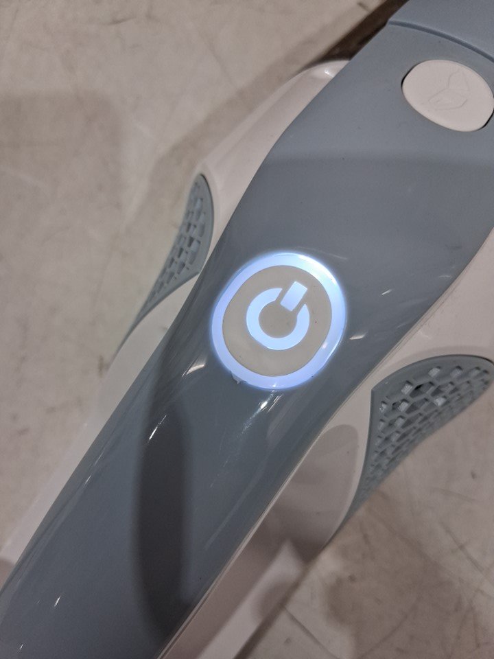 tested for power. please note the two of the attachment pieces are unable to come apart, there are some markings on the button. there is also dirt on the item from previous use. see photos.
