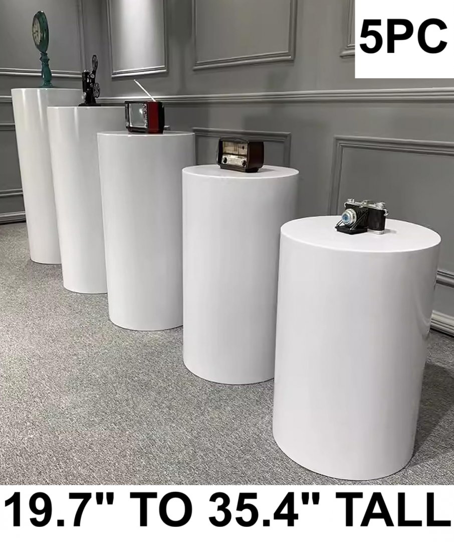 Please note the stands show signs of previous use with smudging and scuff marks around the plastic and the largest pedestal top has some peeling, see photos.