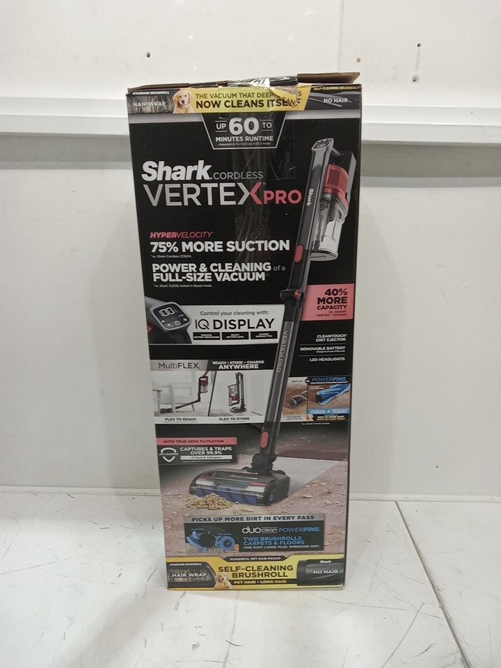 shark vertex pro cordless stick vacuum with iq display, duoclean powerfins and multiflex - black/red (model: IZ662H)