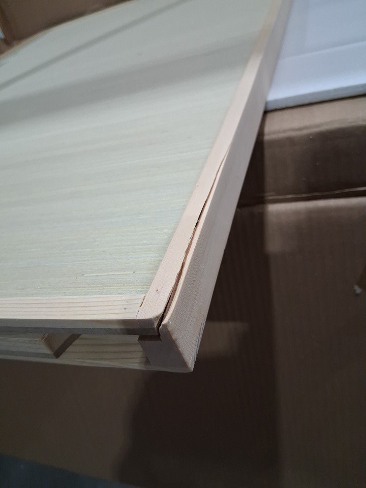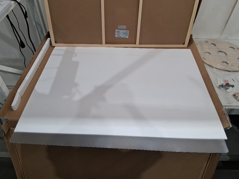 Please note that there is a split in the wood on one corner, but it otherwise appears brand new (see photos)