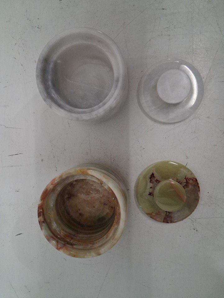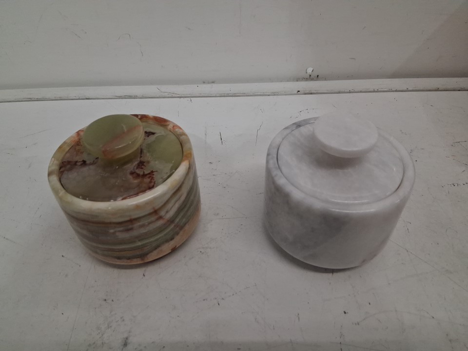 4PC MARBLOUS KRAFTS Salt / Pepper Cellar Holder with Lids - 4" (EACH) - Green Onyx/White