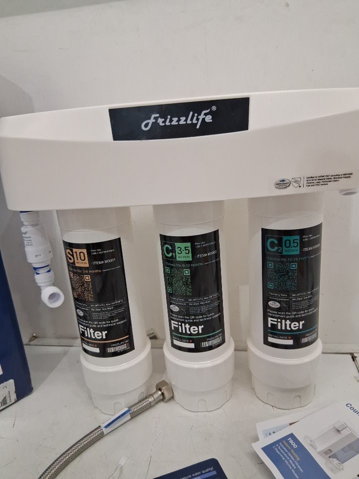 Frizzlife 3-Stage Under Sink Water Filter System with direct connection to main tap, Certified 3-Stage 0.5 Micron Carbon Block - removes 99.99% of lead, chlorine, fluoride and more - white (model: sk99)