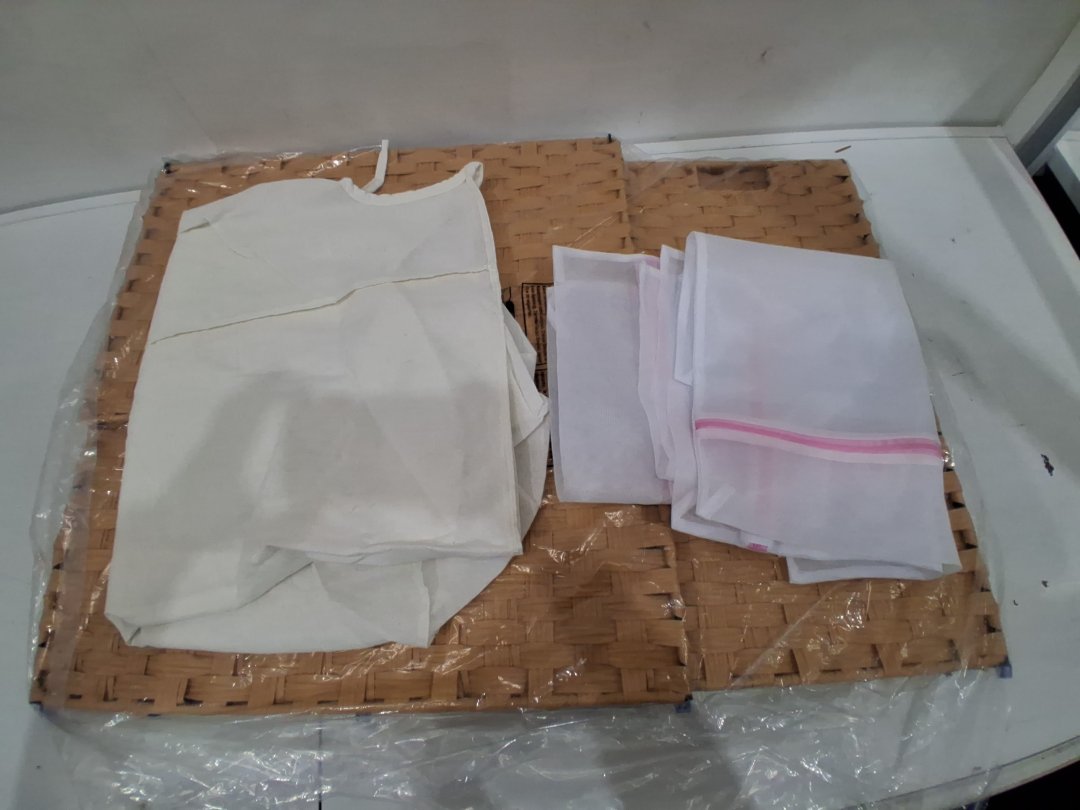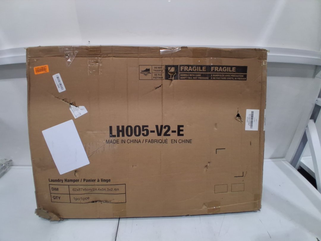Greenstell Synthetic Rattan Laundry Hamper with Lid with 2 Removable Liner Bags - 110L - 99LBS CAP - LIGHT WOOD/WHITE (MODEL: LH005-V2-E)