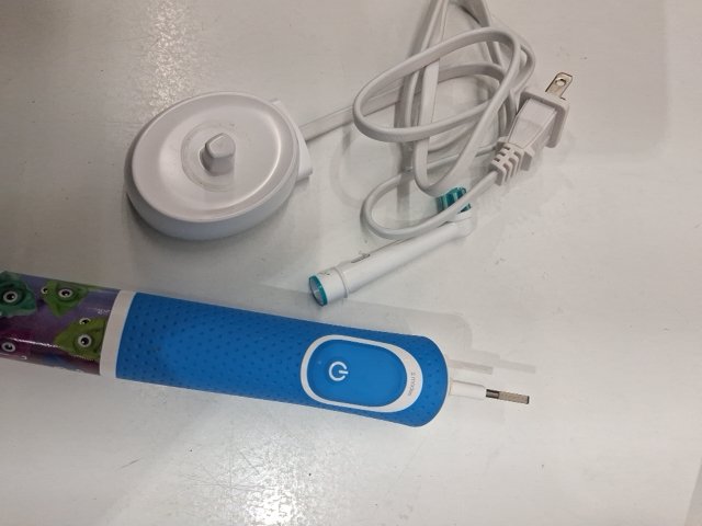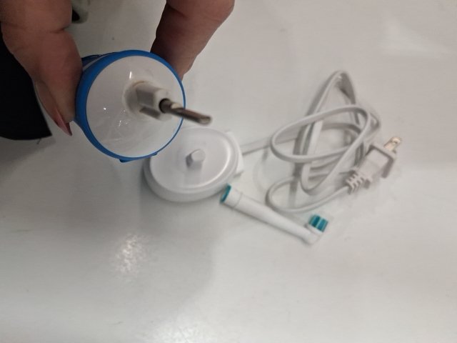 There is a bit of toothpaste residue on the brush handle / The brush head need to be replaced, and a deep cleaning is also recommended. tested for power.