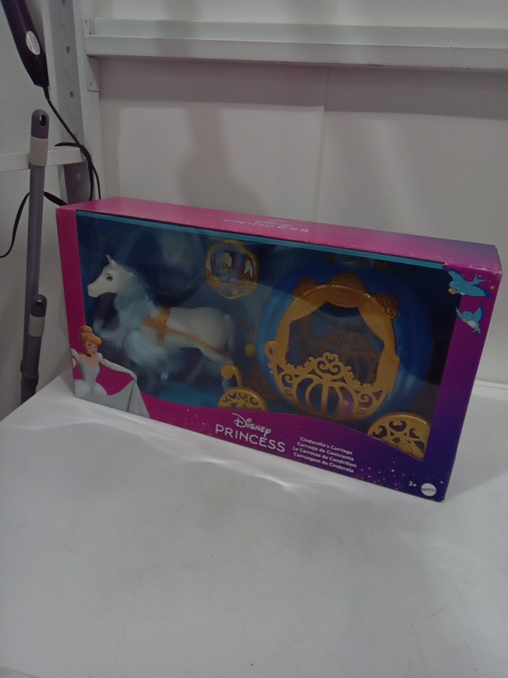 kids Mattel Disney Princess Cinderella’s Rolling Carriage with Horse with Brushable Mane & Tail - white/blue/gold