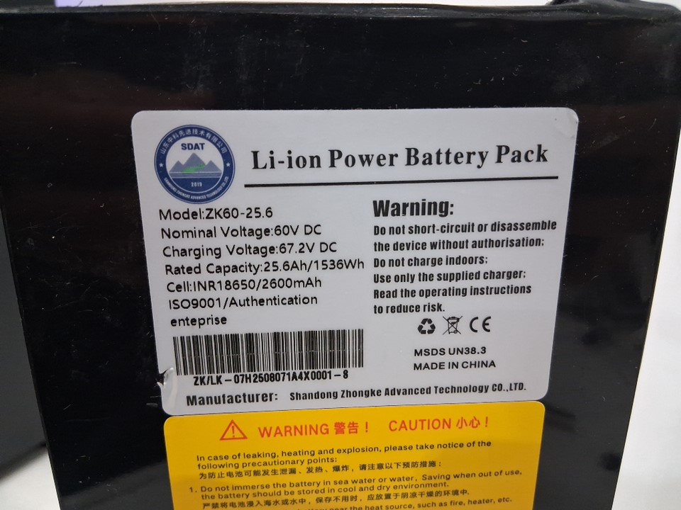 REPLACEMENT lithium-ion battery pack - 60v dc | 25.6A - black - (model: ZK60-25.6)
