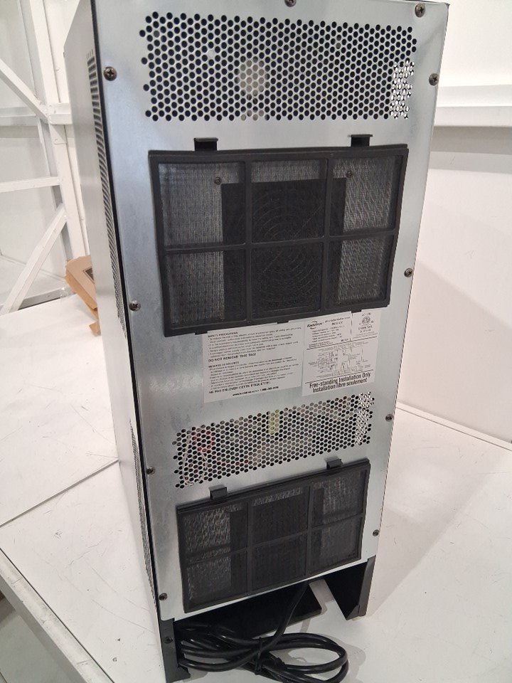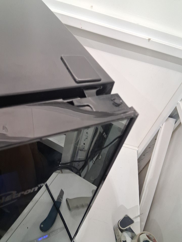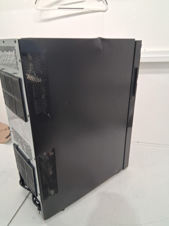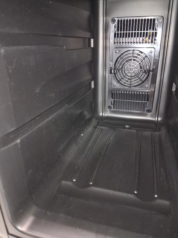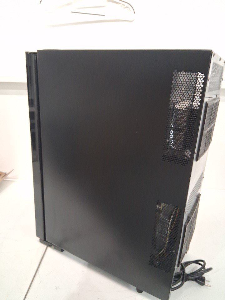 Wine cooler has light scuffing on inside, outside left side has two dents in casing, door edge by handle is chipped and top of door part of mirror casing is broken
