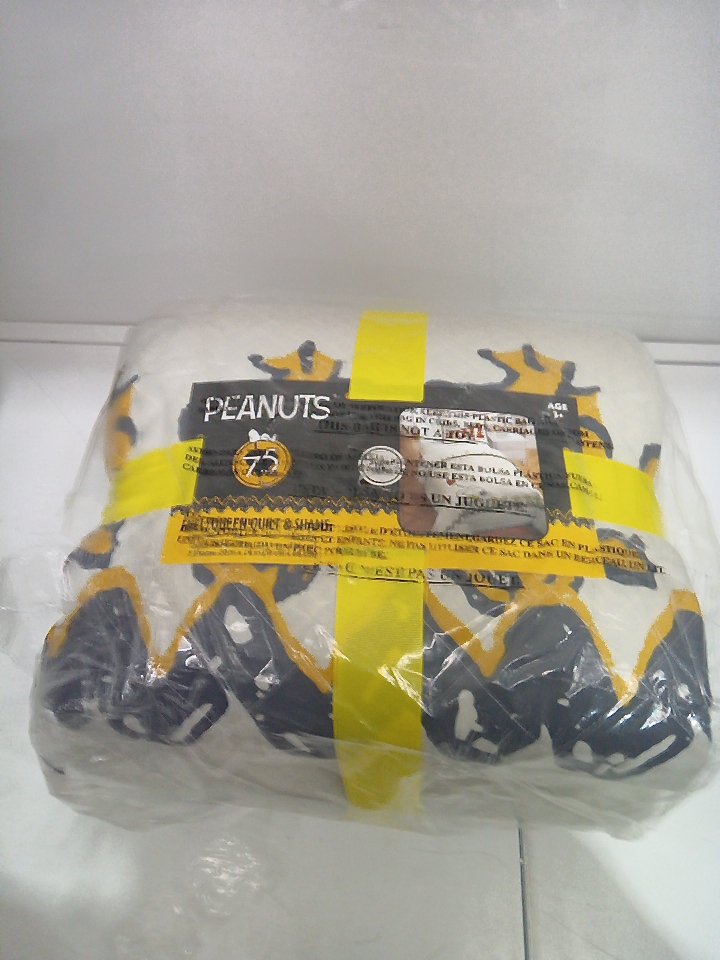 3PC FRANCO PEANUTS 75TH ANNIVERSARY QUILT AND SHAM SET - QUEEN 88" X 92" - SNOOPY AND WOODSTOCK WHITE