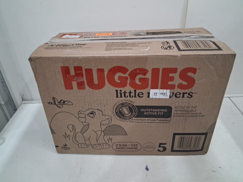 132PK HUGGIES LITTLE MOVERS DIAPERS - SIZE 5 ( 27+lbs) - DISNEY BABY LION KING (MODEL: 56316)