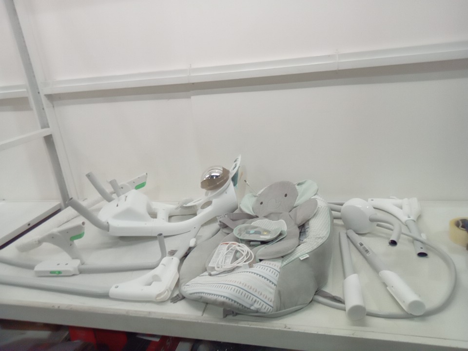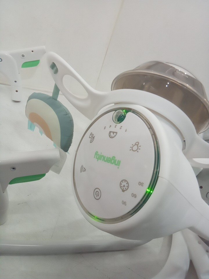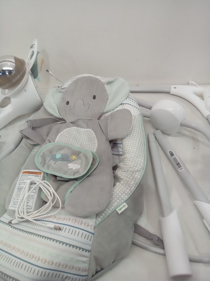 INFANT INGENUITY SIMPLECOMFORT CRADLING ROCKER PLUG-IN SWING WITH SOOTHING VIBRATIONS AND 6 SPEEDS - RAYLAN - WHITE/GREY (MODEL: 11791 0313)