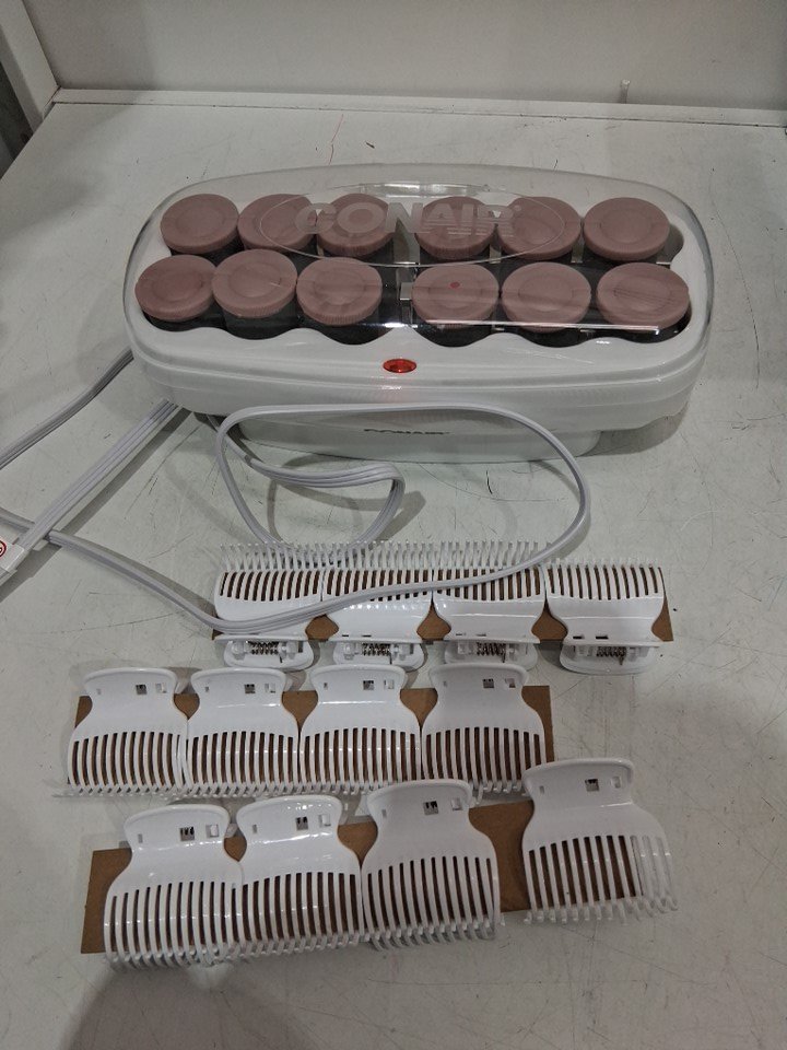 conair waves and volume jumbo hot rollers - 12 capacity - white/pink (model: chv12xnc)