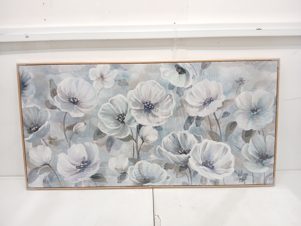 yearainn Floral Blossom Framed Wall Art - 24" x 48" - blue/white