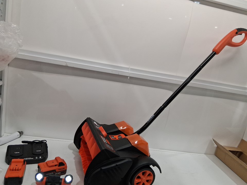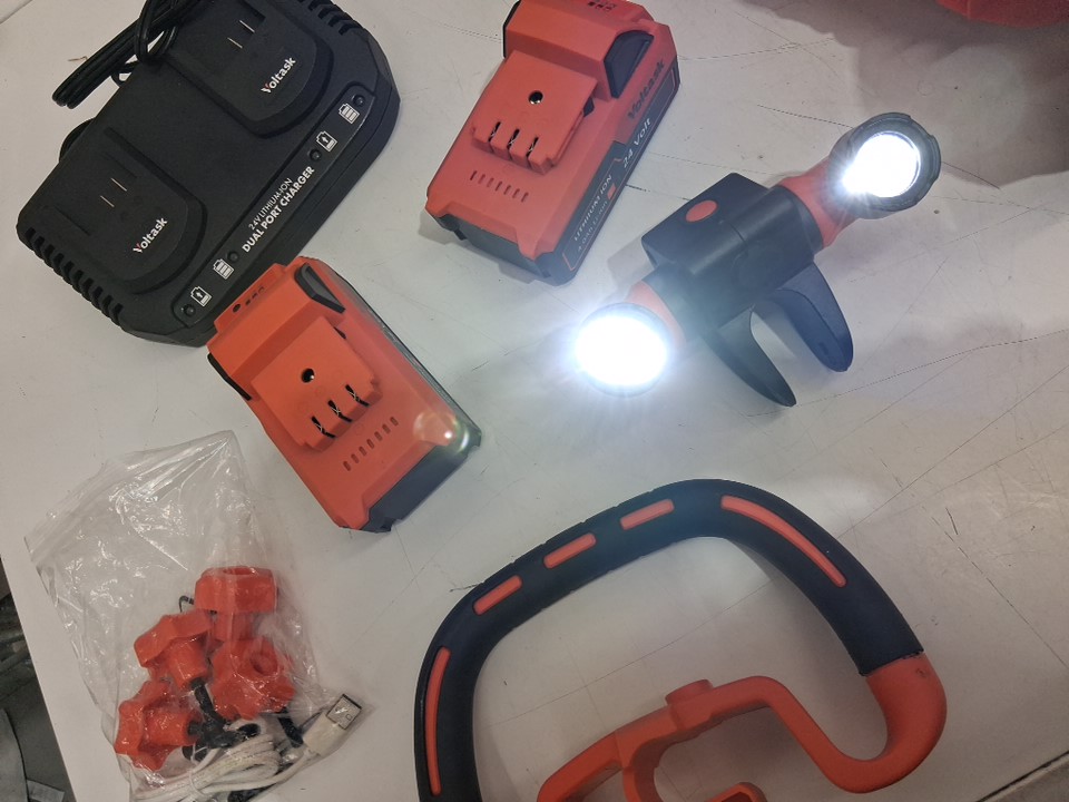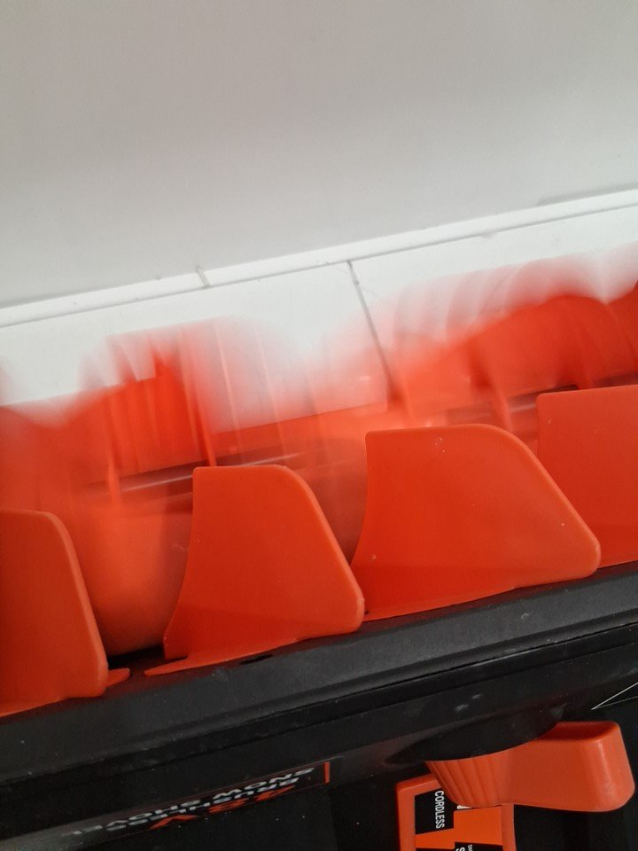 tested for power. minimal signs of previous use. a small amount of dust like material around the blade.