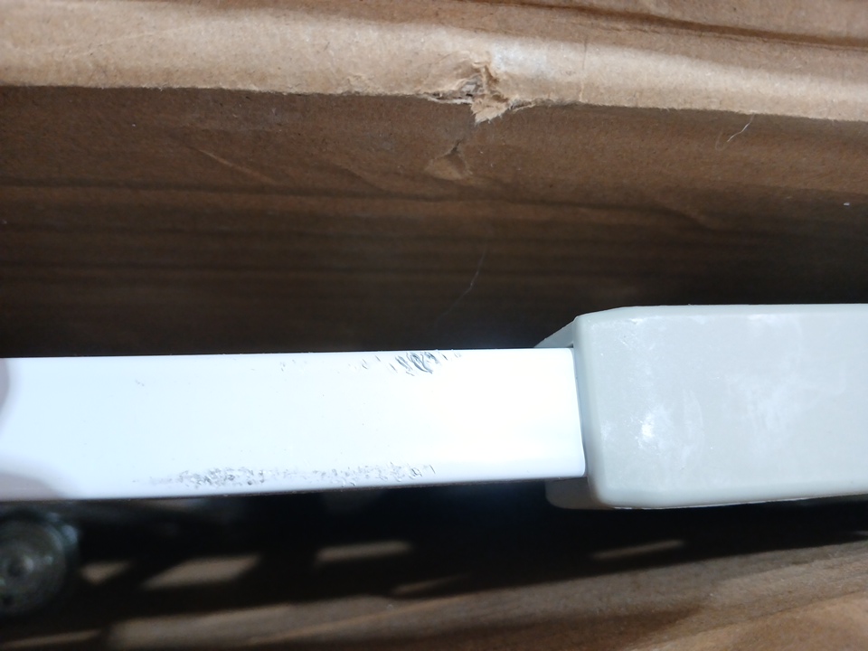 This item is dirty, has scratches, has small dents, and has scuffs