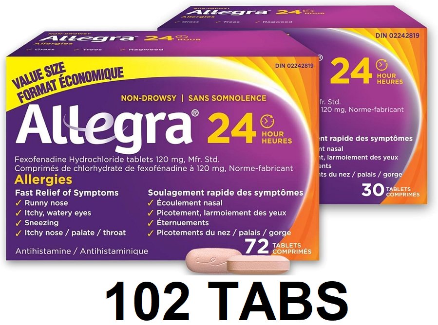 (102 tabs) allegra 24 hour non drowsy allergy tablets