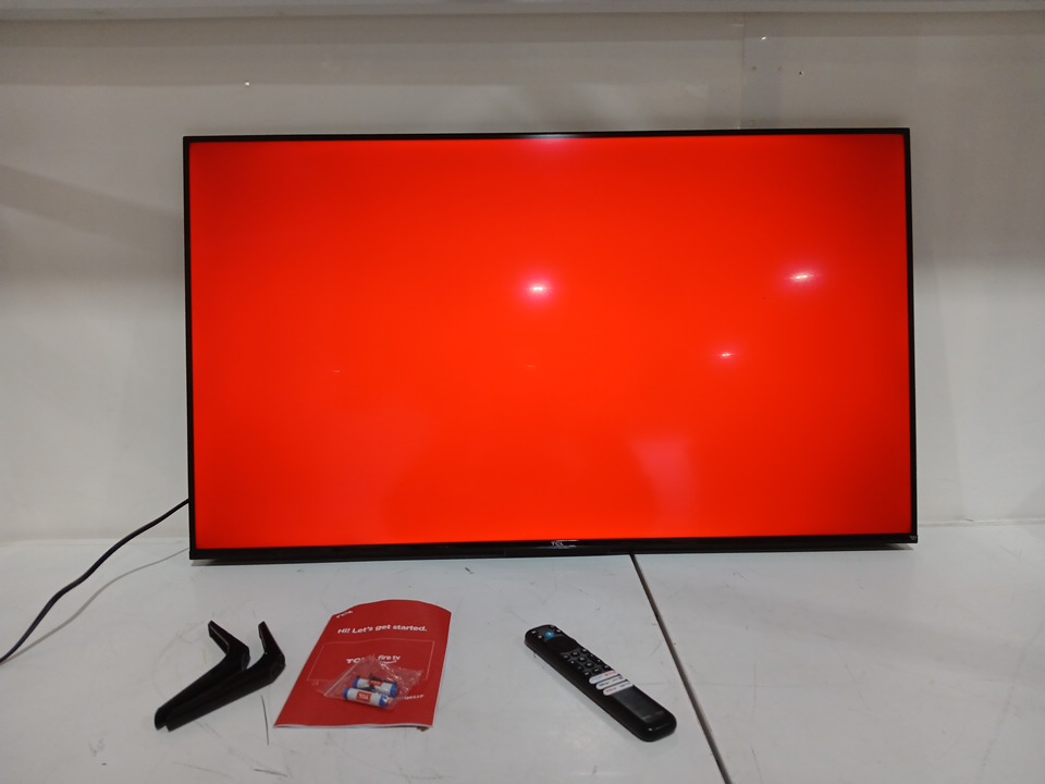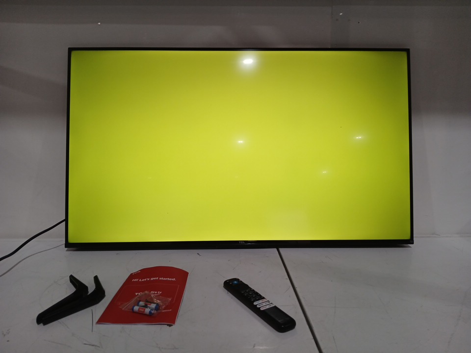 the tv has been tested for power & connectivity, there are smudges on the screen from previous handling.