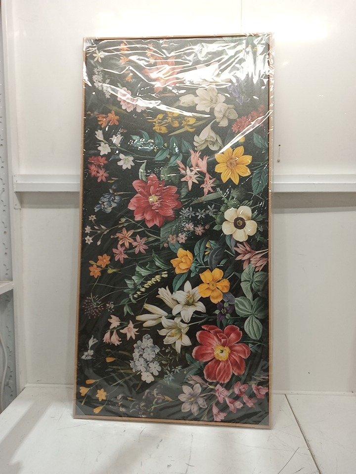 tigeridge Botanical Flowers Bouquet Canvas wall art with natural wood frame - 24" x 48"