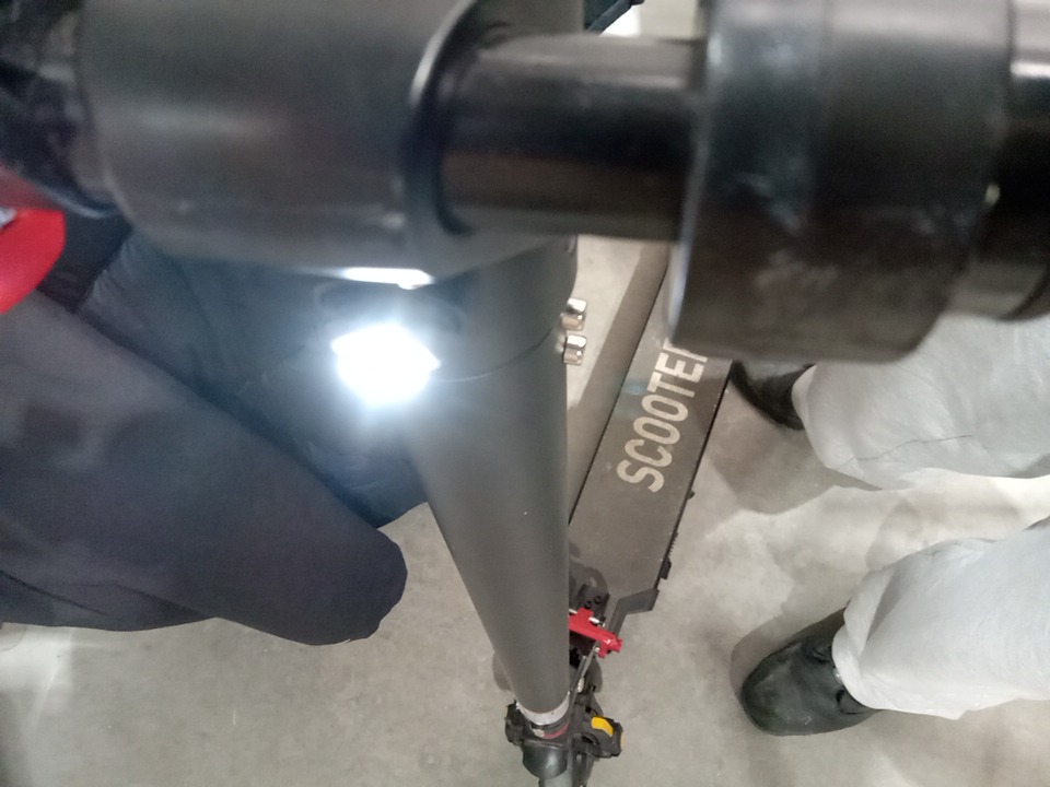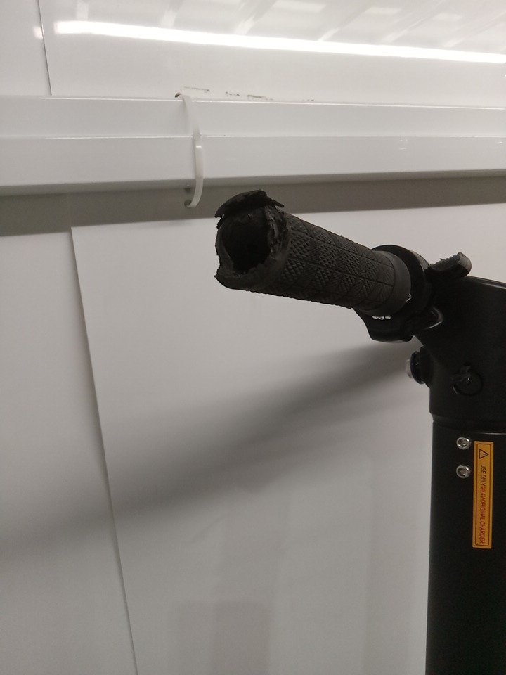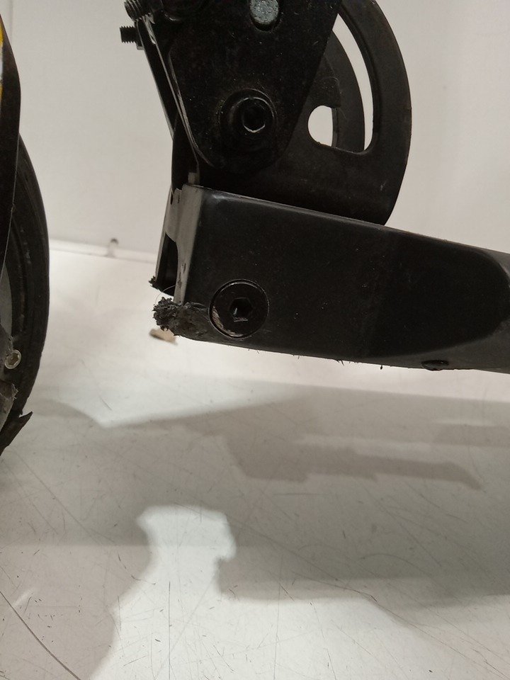 Missing the power cored, third party cord has been provided. Tested for power/basic function only. Scratches and chips throughout. Pieces of the wheel chipped. Ends of handles are coming off.