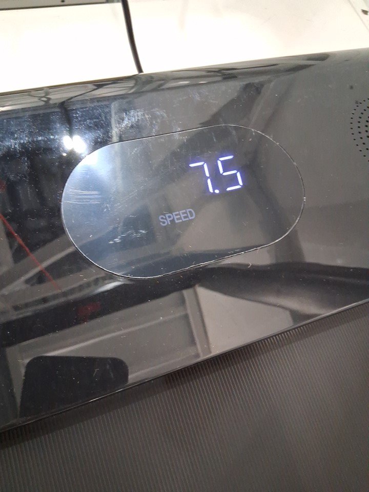 There are some light stains/dust on the tread, as well as some scuffs/chips in the paint on the front of the treadmill and the top of the folding bar due to shipping/repackaging - see photos. Outside of these cosmetic issues, there are no clear signs of previous use or any other obvious issues, and all functions appear normal. Tested for power and top speed.