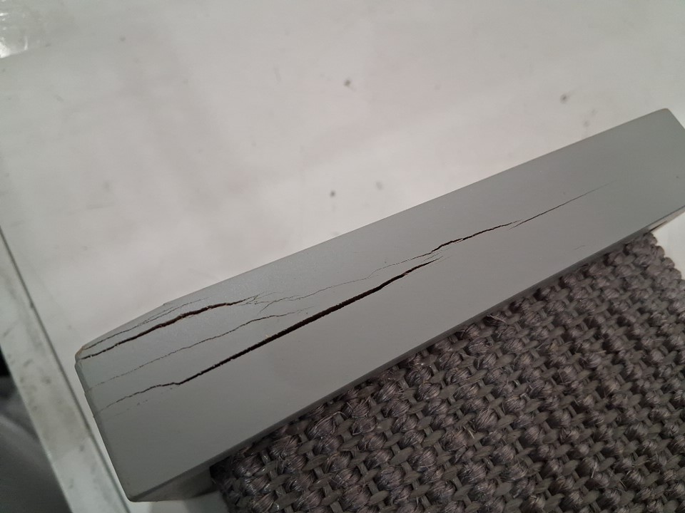 There are some dents on the top and bottom posts, on the top post the wood is broken but still useable, see photos.