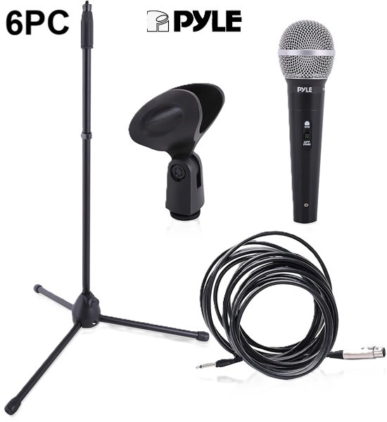 6pc pyle professional dynamic microphone kit - 1/4' audio connection - black (Model : PDMIC88st)