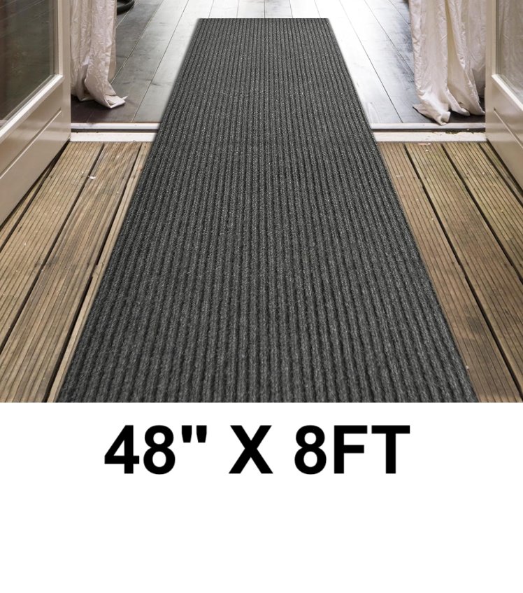 100pointone ribbed rubber back entryway door mat- indoor/outdoor non-slip - 48" X 8FT black/grey