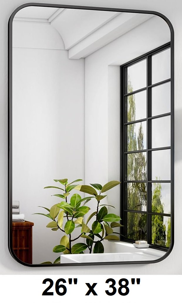 HARRITPURE Wall Mirror Rectangle Bathroom Mirror - 26''x38'' - black