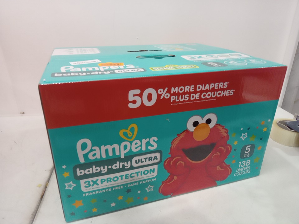 138PK PAMPERS BABY DRY ULTRA DIAPERS - SIZE 5 (20-37LBS) - SESAME STREET