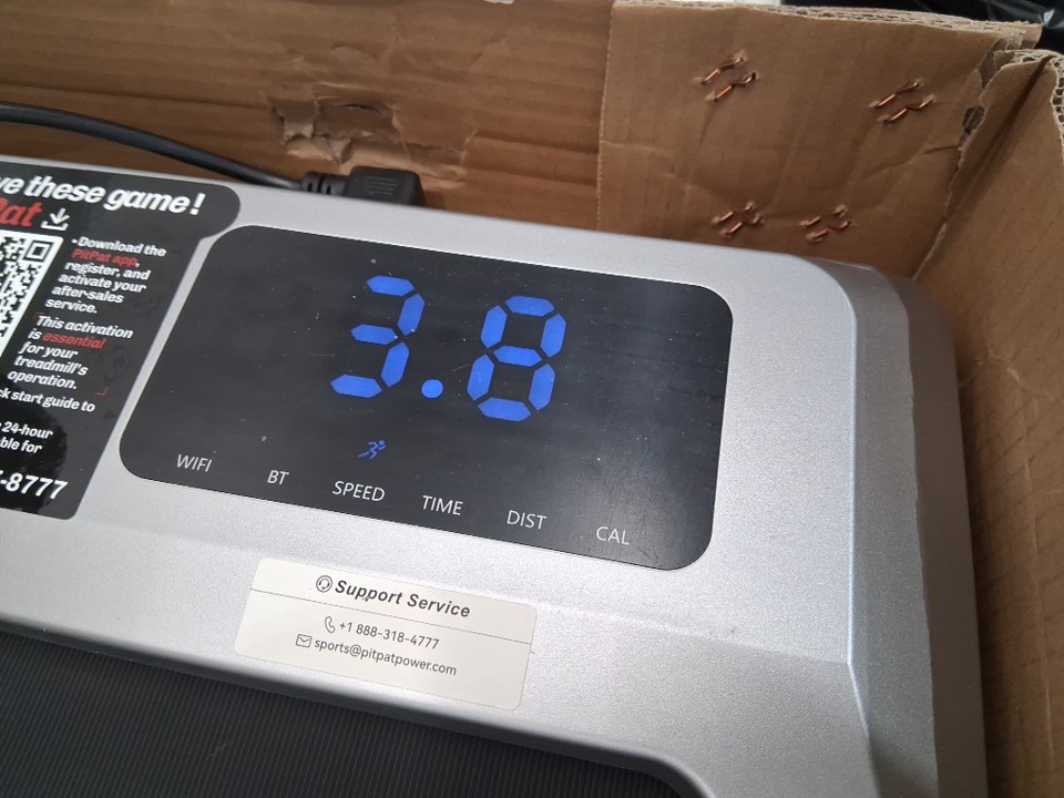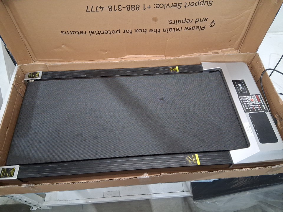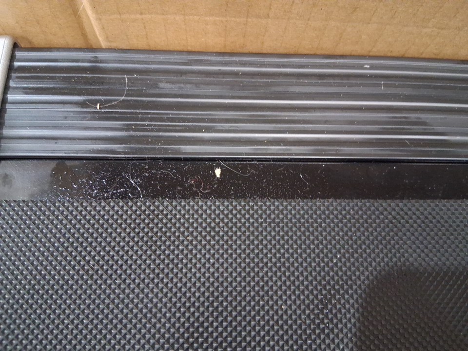 The lubricant included with the treadmill appears to have leaked during shipping, resulting in some wet spots and stains on and underneath the tread - see photos. Outside of this dirtiness, the leak appears to have caused no damage to the treadmill or remote, and there are no other visible issues or damage. Tested for power and max speed.