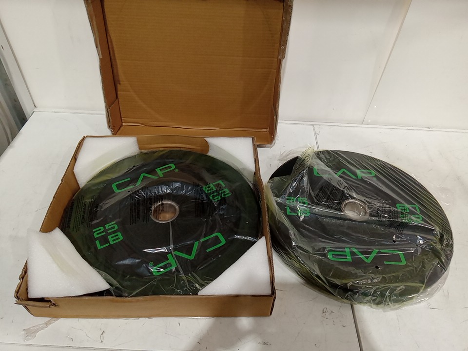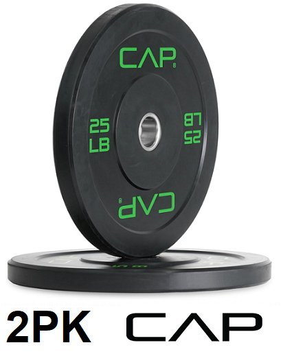 2pk CAP Barbell Rubber Olympic Bumper Plates - 25 lbs each - black & green (model:‎OPR6PIS-50)