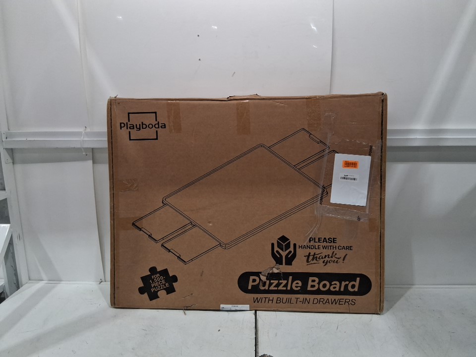 Playboda 1500 Pieces Rotating Plastic Puzzle Board with Drawers and Cover- 35" x 27" - cream/white (MODEL: PTZ1500)