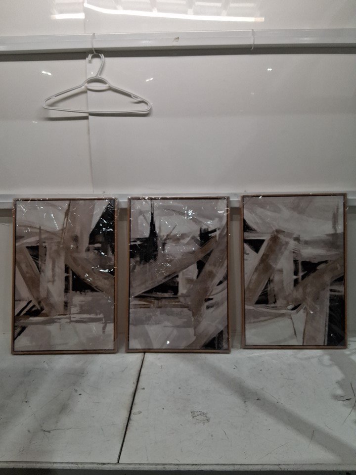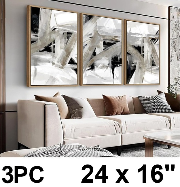 3pc NINEASO Bold Abstract wood framed Modern canvas painting - 24" x 16" - Taupe Black Gray Abstract Artwork