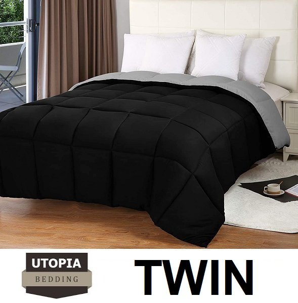UTOPIA BEDDING ALL SEASON SOFT PLUSH DOWN-ALTERNATIVE LIGHTWEIGHT COMFORTER - TWIN - BLACK/GREY