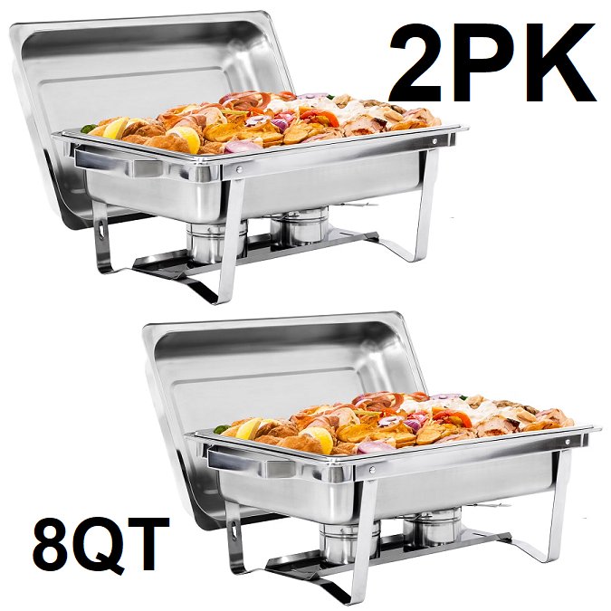 2pk SuperDeal Rectangle Tray Chafing Dish with streno holders -8 Quart/each - silver
