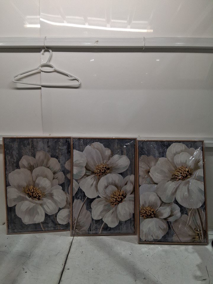 3pc yearainn Canvas Natural Wood Frame Wall Decor Floral Print picture frames - 24" x 16" - Yellow White Flowers