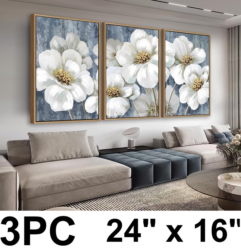 3pc yearainn Canvas Natural Wood Frame Wall Decor Floral Print picture frames - 24" x 16" - Yellow White Flowers