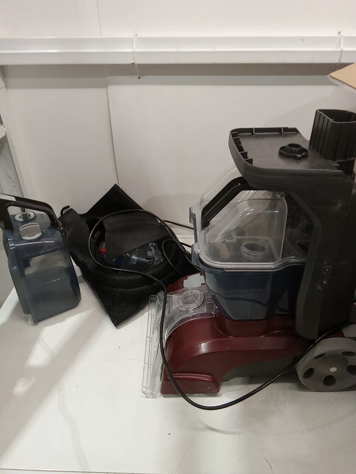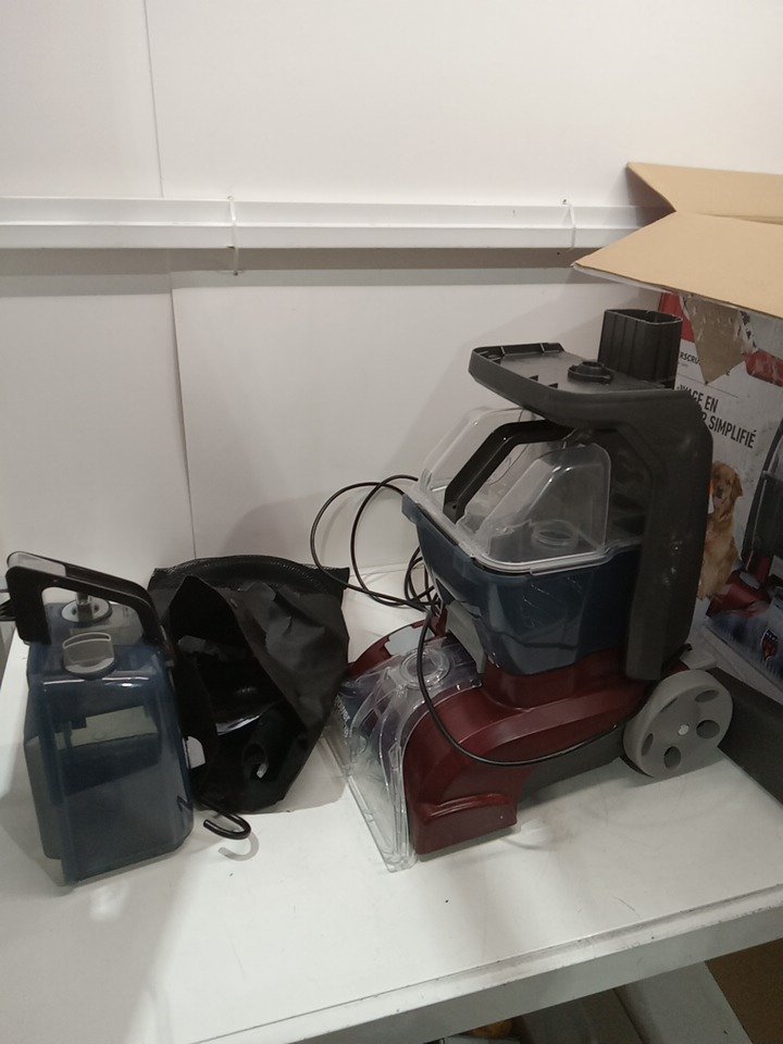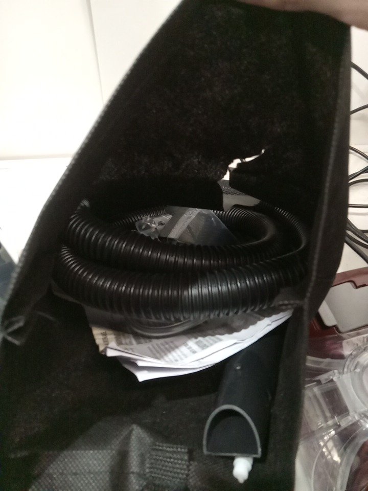The bag for the accessories is ripped, dust/dirt on/in the vacuum form previous use, can likely be cleaned. Tested for power only.