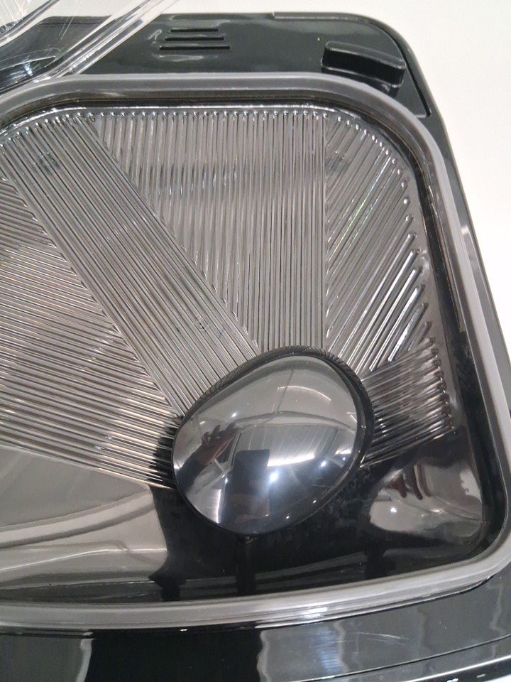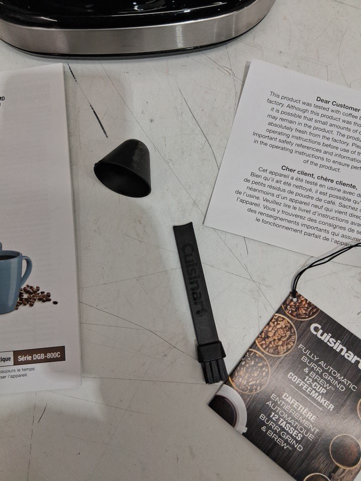 this does have grinds throughout and water spots suggesting previous use. tested for power. scoop is broken. this does not affect function.