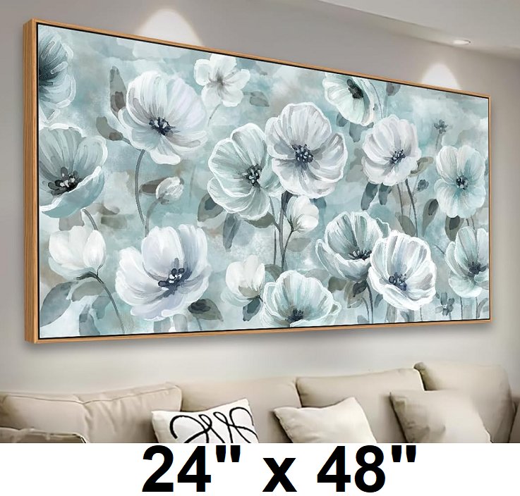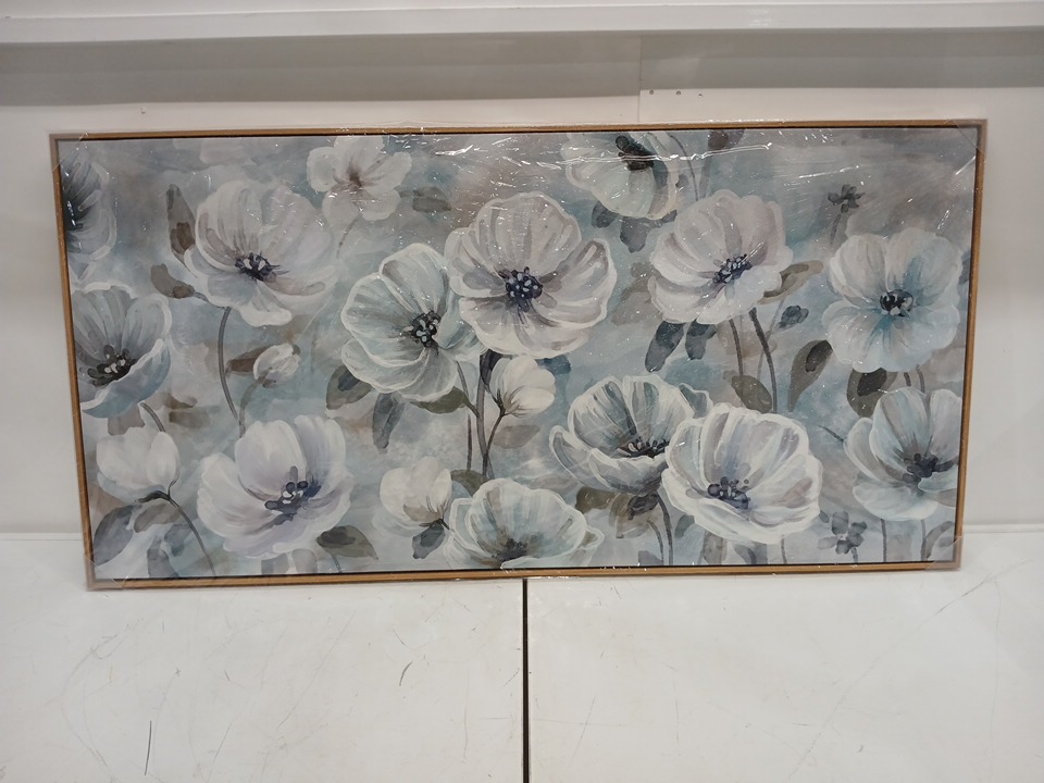 yearainn Floral Blossom Framed Wall Art - 24" x 48" - blue/white