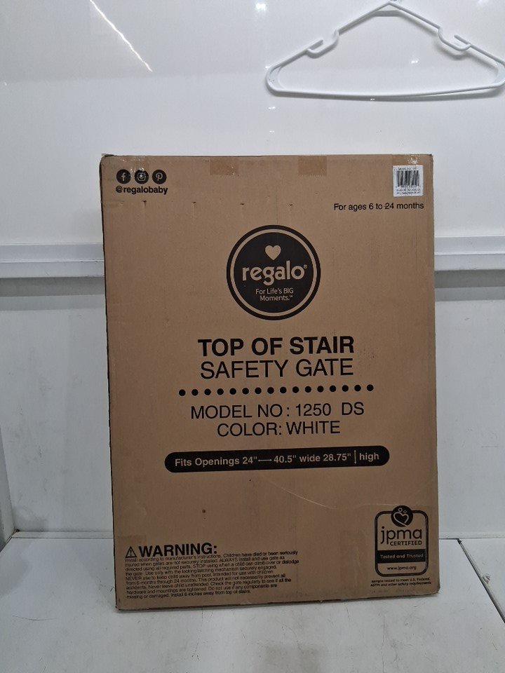 Regalo Extra Wide 2-in-1 Top of Stairway and Hallway Safety Gate with Mounting Kit - 29"x24"-40.5" - White (Model: 1250DS)